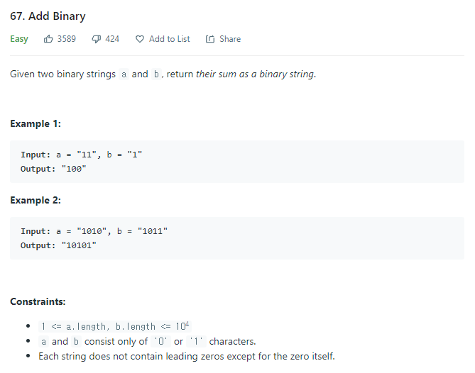 *67. Add Binary 본문