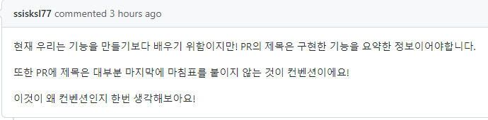 - pr 을 할 때 다양한 규칙이 있다는 것을 알게 되었다.