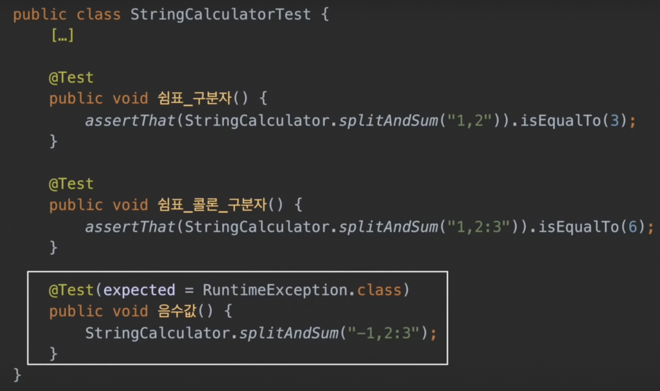 음수 값을 RuntimeException 예외를 throw 하는 메서드 작성
