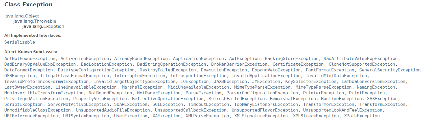 여기서 자주 사용하는 Exception의 종류는 대략 10가지이다.