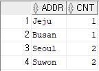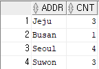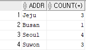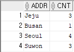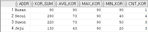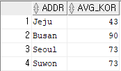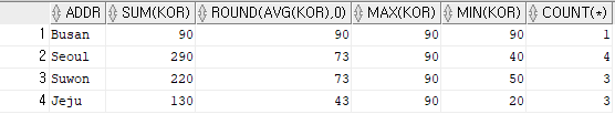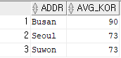 문제1) 주소가 'Incheon'인 행의 국어 점수의 최대값을 조회하시오.