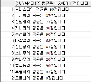select uname || '의 평균은' || aver || '점입니다.' as str