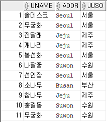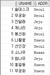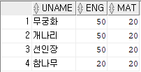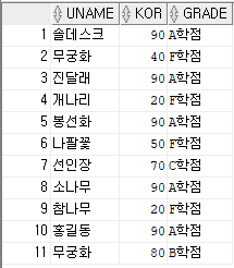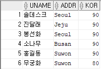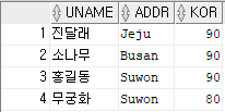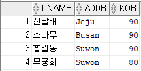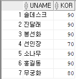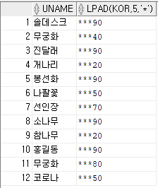 select uname, lpad(kor, 5, '*') --5칸 내에서 출력하고 빈칸은 *로 채움