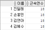예시) 박지성의 근속연수 : 20년 출력하시오.