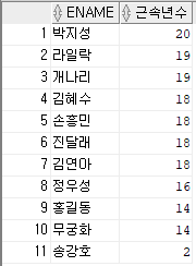 select ename, trunc((sysdate - hiredate)/365) as 근속년수