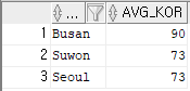 문제4) 서울 지역의 국어 점수 평균보다 잘한 국어 점수가 다른 지역에 있는지를 조회하시오.
