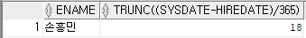 select ename, trunc((sysdate - hiredate)/365) from emp where ename='손흥민';