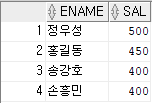 문제11) 급여가 100 이하 또는 400 이상의 직원을 조회하시오. (급여 내림차순)