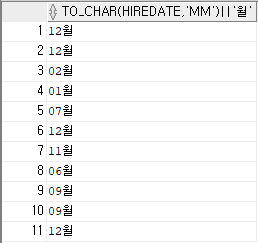 select count(case when to_char(hiredate, 'mm')='12' then 1 end) as "12월"