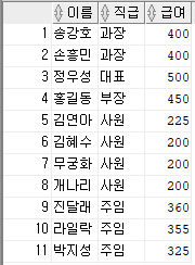문제3) 사원 이름순(오름차순) 정렬하시오.
