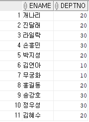 ※ deptno로 묶고, deptno와 hiredate로 오름차순
