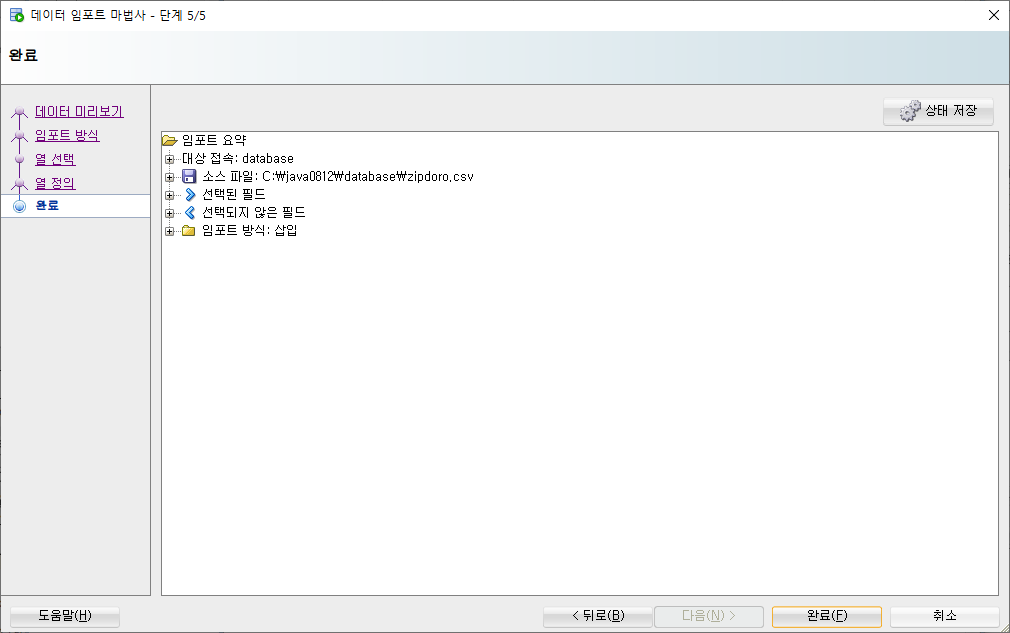 8) 이 화면이 나오면 제대로 데이터 임포트 중