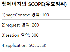 out.print("1)pageContext 영역: " + kor + "<hr>");