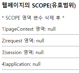 out.print("<p>* SCOPE 영역 변수 삭제 후 *</p>");