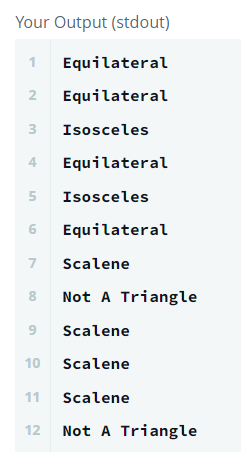 WHEN A+B<=C OR A+C<=B OR B+C<=A THEN 'Not A Triangle'