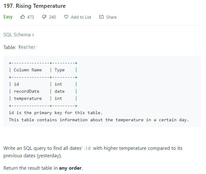 leetcode 197. Rising Temperature 본문