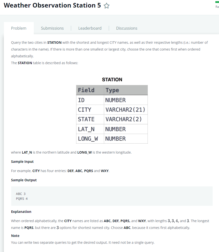 hackerrank Weather Observation Station 5 본문