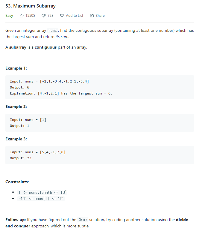 53. Maximum Subarray 본문